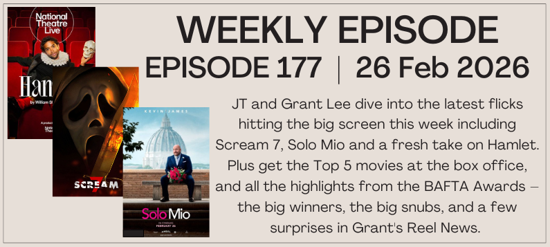 JT and Grant talk all things movies, from new Releases to Special Events. Movie news, Top 5 movies from around the world & of course Australia.